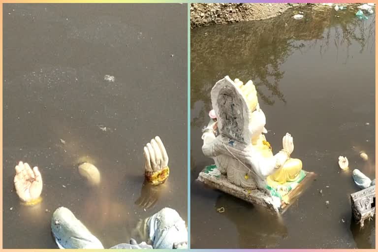 कांग्रेस ने लगाया आरोप,गंदे पानी में करना पड़ा गणेश प्रतिमा विसर्जन