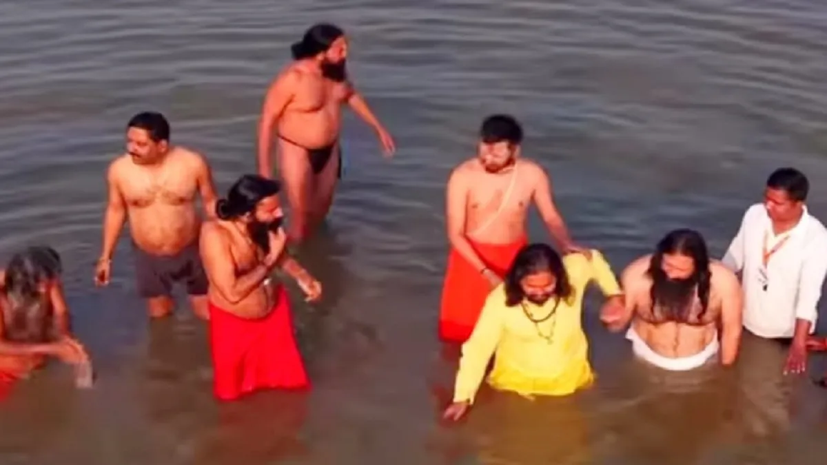 बाबा राम देव ने माघ मेले में आकर किया गंगा स्नान