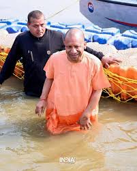 मुख्यमंत्री योगी ने संगम में लगायी आस्था की डुबकी