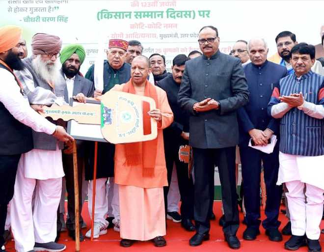 मुख्यमंत्री ने पूर्व प्रधानमंत्री भारत रत्न चौधरी चरण सिंह के जन्मदिवस पर विधान भवन प्रांगण स्थित उनकी प्रतिमा पर पुष्प अर्पित किया। योगी ने ‘किसान सम्मान दिवस’ पर किसानों को ट्रैक्टर की चाबी दी। साथ ही किसानों, वैज्ञानिकों, एफपीओ आदि को सम्मानित भी किया। मुख्यमंत्री ने चौधरी चरण सिंह सीड पार्क अटारी लखनऊ के प्लॉट आवंटन प्रक्रिया का बटन दबाकर शुभारंभ किया।