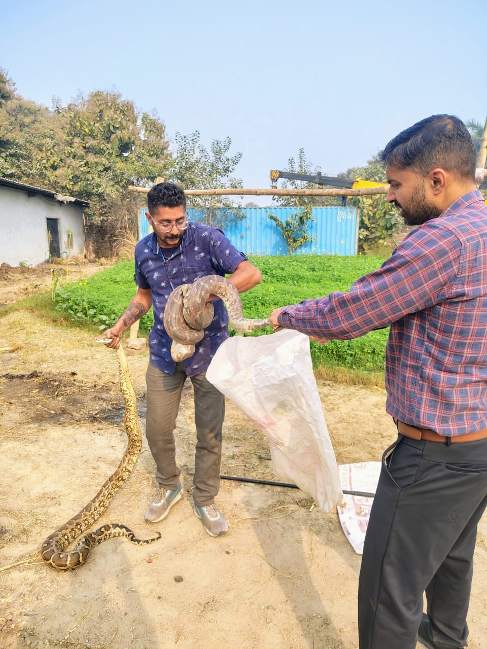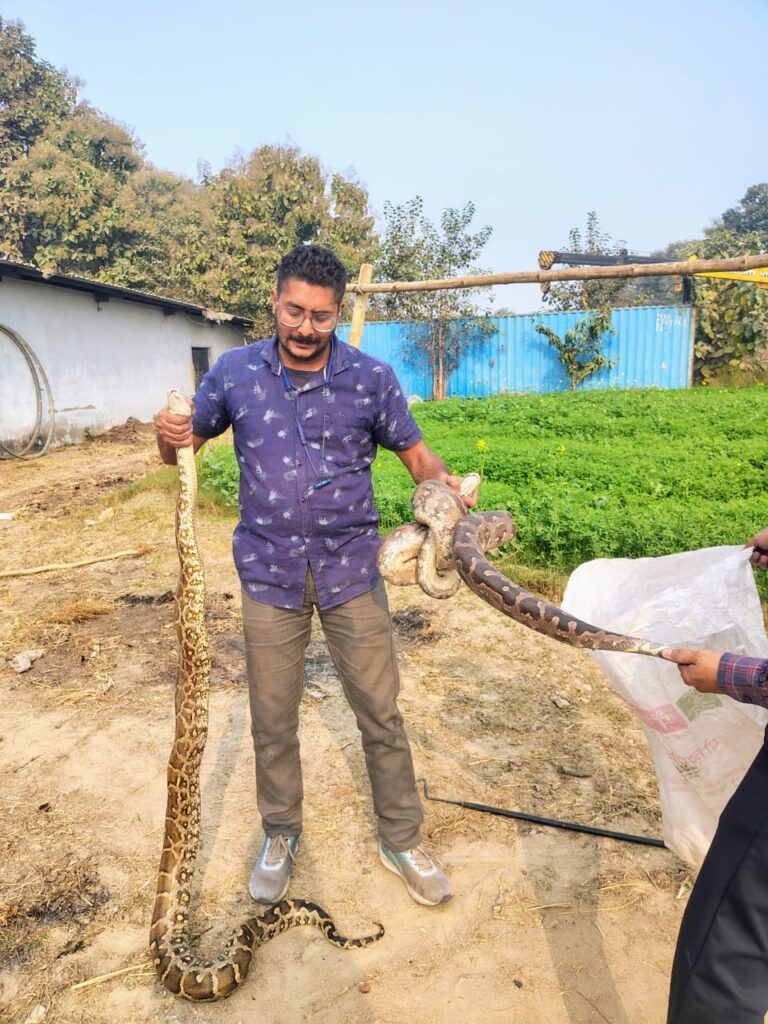 संस्था से जुड़े अभिनंदन मिश्रा जी द्वारा रेस्क्यू का कार्य शुरू किया गया और ऐसे में तीन अजगर और एक मॉनिटर लिजर्ड को उसी जगह से सुरक्षित रेस्क्यू किया गया। और उन्हें सुरक्षित अनुकूलतम पर्यावरणीय क्षेत्र में आजाद किया गया।