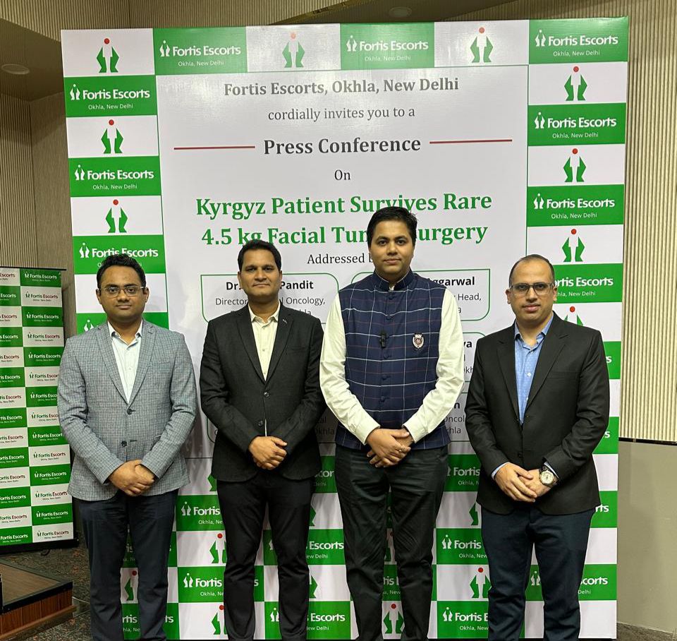 नई दिल्ली, फोर्टिस एस्कॉर्ट्स ओखला, नई दिल्ली के डॉक्टरों ने किर्गिस्तान के 48 वर्षीय मरीज के चेहरे से 4.5 किलोग्राम का बेहद बड़ा और खतरनाक कैंसरग्रस्त ट्यूमर सफलतापूर्वक निकालकर उसकी जान बचाई। फुटबॉल के आकार का यह ट्यूमर 19 x 18 से.मी. का था और तेजी से बढ़ रहा था। मरीज को इसे अपने हाथ से पकड़कर रखना पड़ता था, ताकि उसका चेहरा लटक न जाए।
