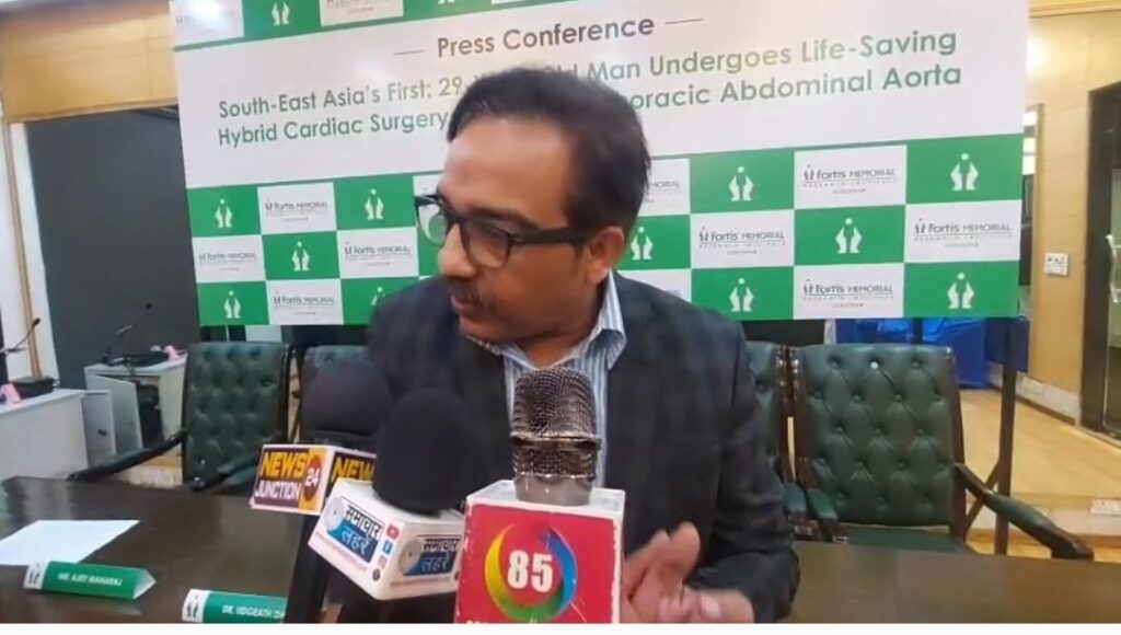 फोर्टिस मेमोरियल रिसर्च इंस्टीट्यूट, गुरुग्राम में डॉक्टरों ने एक बहुत ही दुर्लभ और जटिल हाइब्रिड हार्ट सर्जरी करके 29 साल के युवक की जान बचाई है। यह सर्जरी उस समय की गई जब मरीज की छाती और पेट की सबसे बड़ी नस (थोरेसिक एब्डॉमिनल एओर्टा) फट चुकी थी। डॉक्टरों के अनुसार, यह दक्षिण-पूर्व एशिया में अपनी तरह का पहला मामला है।
