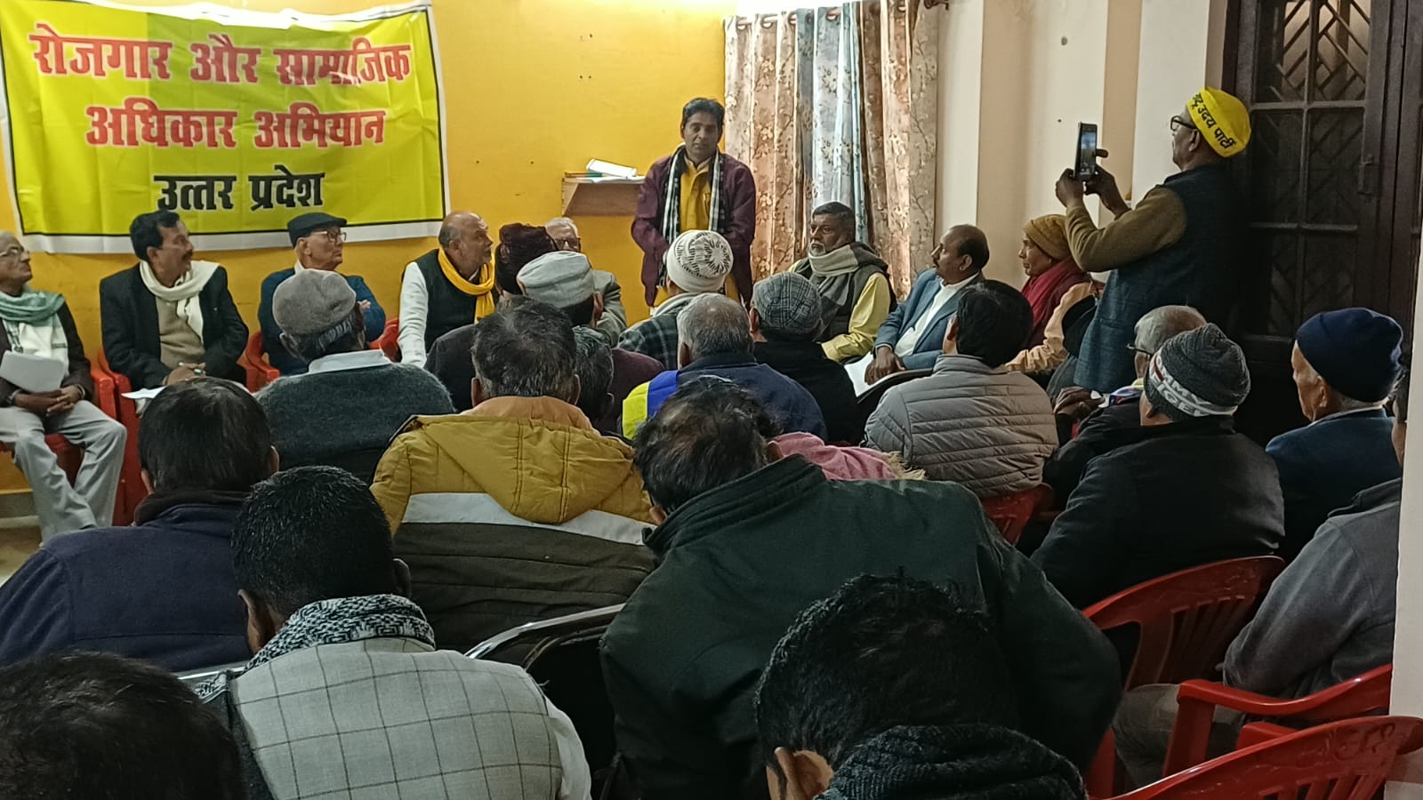 आधार पत्र में कहा गया कि प्रदेश में हालात बेहद बुरी है। यहां जितना बजट रखा जाता है लगभग उतना ही कर्ज सरकार के ऊपर है। प्रदेश से पूंजी का पलायन हो रहा है। सरकारी विभागों में लाखों पद खाली पड़े हुए हैं। सरकारी शिक्षा और स्वास्थ्य व्यवस्था का हाल बुरा है। इन सवालों को भी धरने में मजबूती से उठाया जाएगा। बैठक में यह भी कहा गया कि एसआईआर में किसी भी वंचित तबके का नाम ना कटने पाए इसके लिए सचेत पहलकदमी ली जाए। बैठक में तय किया गया कि 9 फरवरी के धरने के बाद भी यदि उत्तर प्रदेश सरकार सुनवाई नहीं करती है तो मार्च में एक लंबा क्रमिक आंदोलन लखनऊ में किया जाएगा।
