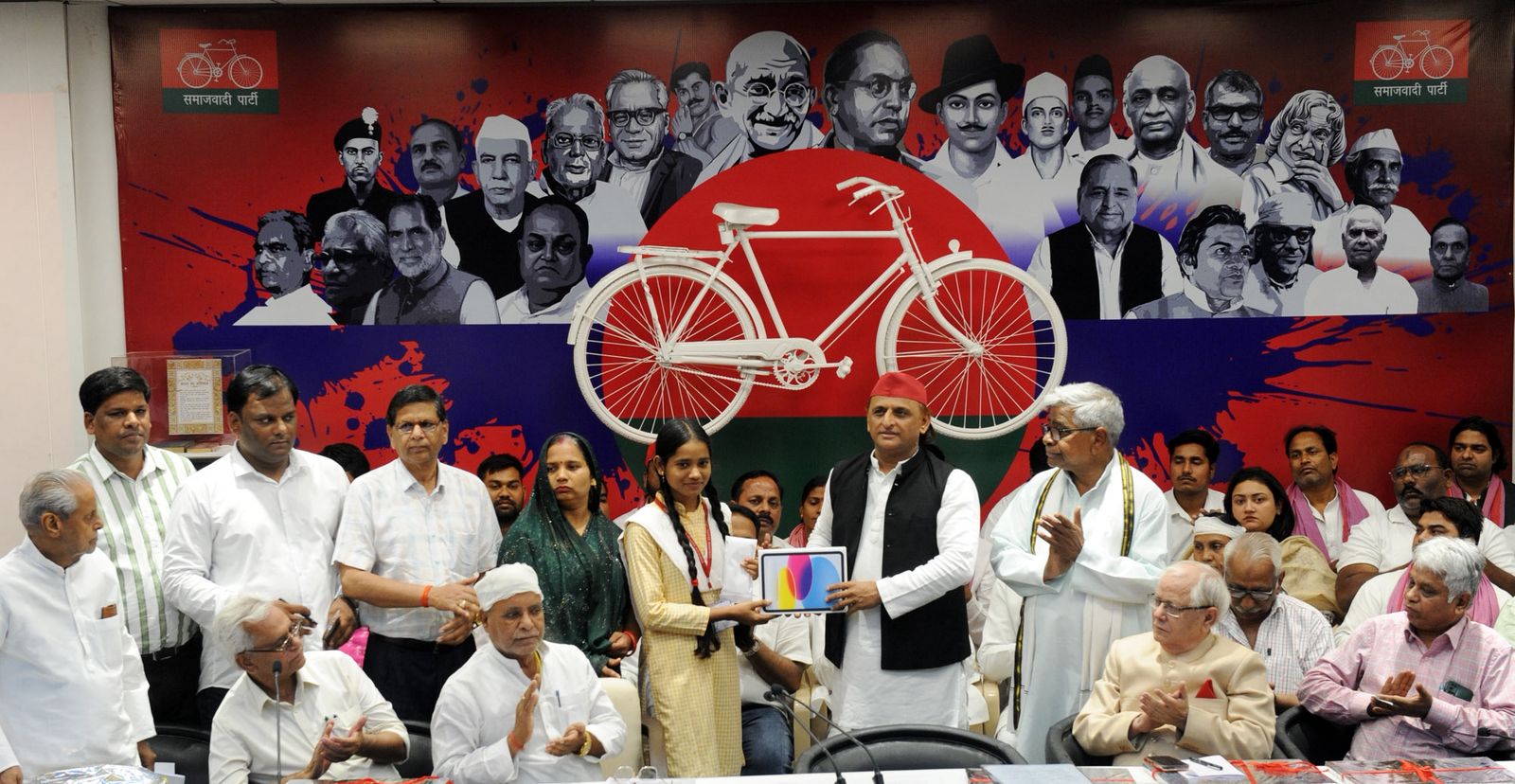 समाजवादी पार्टी के राष्ट्रीय अध्यक्ष अखिलेश यादव ने आज यूपी बोर्ड परीक्षा 2026 में टॉपर छात्राओं अंशिका वर्मा, कशिश वर्मा और शिखा वर्मा को उनके शानदार प्रदर्शन के लिए सम्मानित किया. उन्होंने हाईस्कूल की टॉपर अंशिका वर्मा और कशिश वर्मा को विशेष रूप से प्रोत्साहित किया और दोनों को iPad उपहार में दिया. इसके अलावा अखिलेश यादव ने इंटरमीडिएट की टॉपर शिखा वर्मा को भी सम्मानित किया.