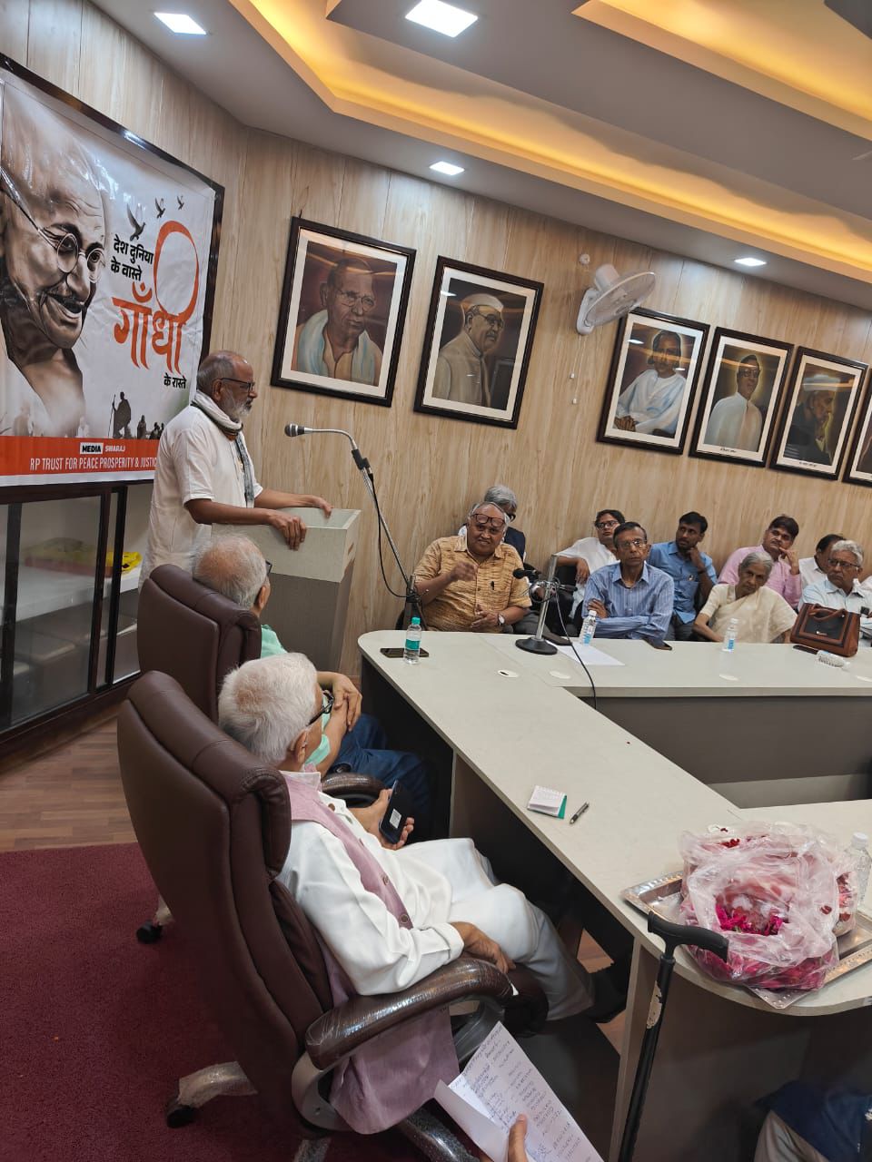 इस अवसर पर संगोष्ठी को संबोधित करते हुए गांधीवादी विचारक रामदत्त त्रिपाठी ने कहा कि गांधीजी आज देश के लिए ही नहीं पूरी दुनिया के लिए मार्ग दर्शक के रूप में है उनके विचार आज भी दुनिया देश को सही मार्ग दिखाने के लिए उपयोगी हैं किंतु क्या कहा जाए जैसी हवा चल रही है उस हवा में बहुत कुछ आवश्यक है कि एक साथ चलकर उनके विचारों को जन-जन तक पहुंचाया जाए .